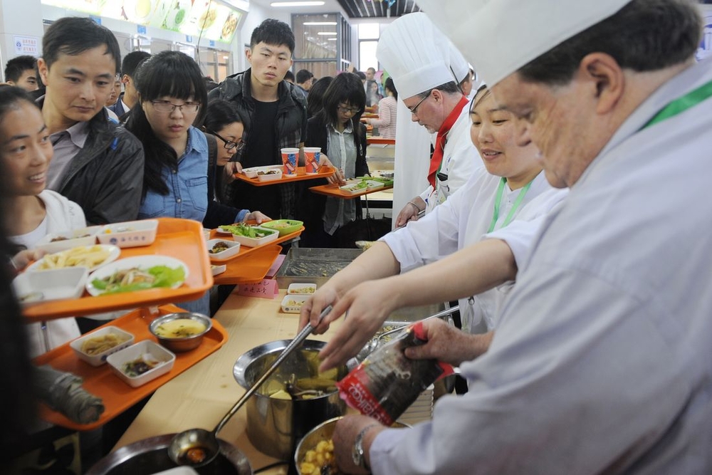 在为期两天的中美韩航海院校饮食文化节上,来自美国麻省海事学院、韩国木浦海洋大学、上海海事大学、大连海事大学的9名大厨纷纷亮出各家“绝活”:颇具上海特色的糖醋里脊花、蒜香海棠虾,美国传统的福斯特火烧香蕉冰淇淋、香辣樱桃排骨、美味烤玉米,闻名遐迩的韩国拌饭、泡菜……琳琅满目的各国美食不仅让广大师生大饱眼福和口福,也近距离领略到了各国不同的烹饪技艺和文化。