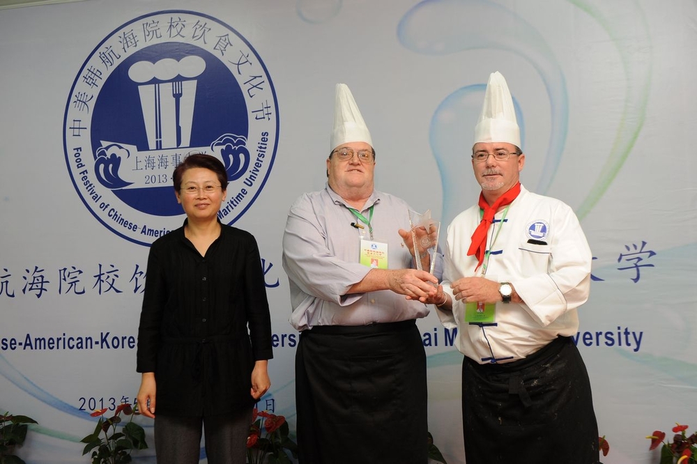 5月30日至31日,2013年中美韩航海院校饮食文化节在上海海事大学隆重举行,来自中美韩三国四校的大厨们齐聚临港校区,摆开“擂台”,比拼厨艺,为广大师生呈现了一场别开生面的世界美食展示。云南艺术学院副校长潘红,上海海事大学副校长金永兴、肖宝家,党委副书记门妍萍,副校长王海威,大连海事大学后勤集团负责人,上海海事大学相关部门负责人、中外师生代表等出席活动。
