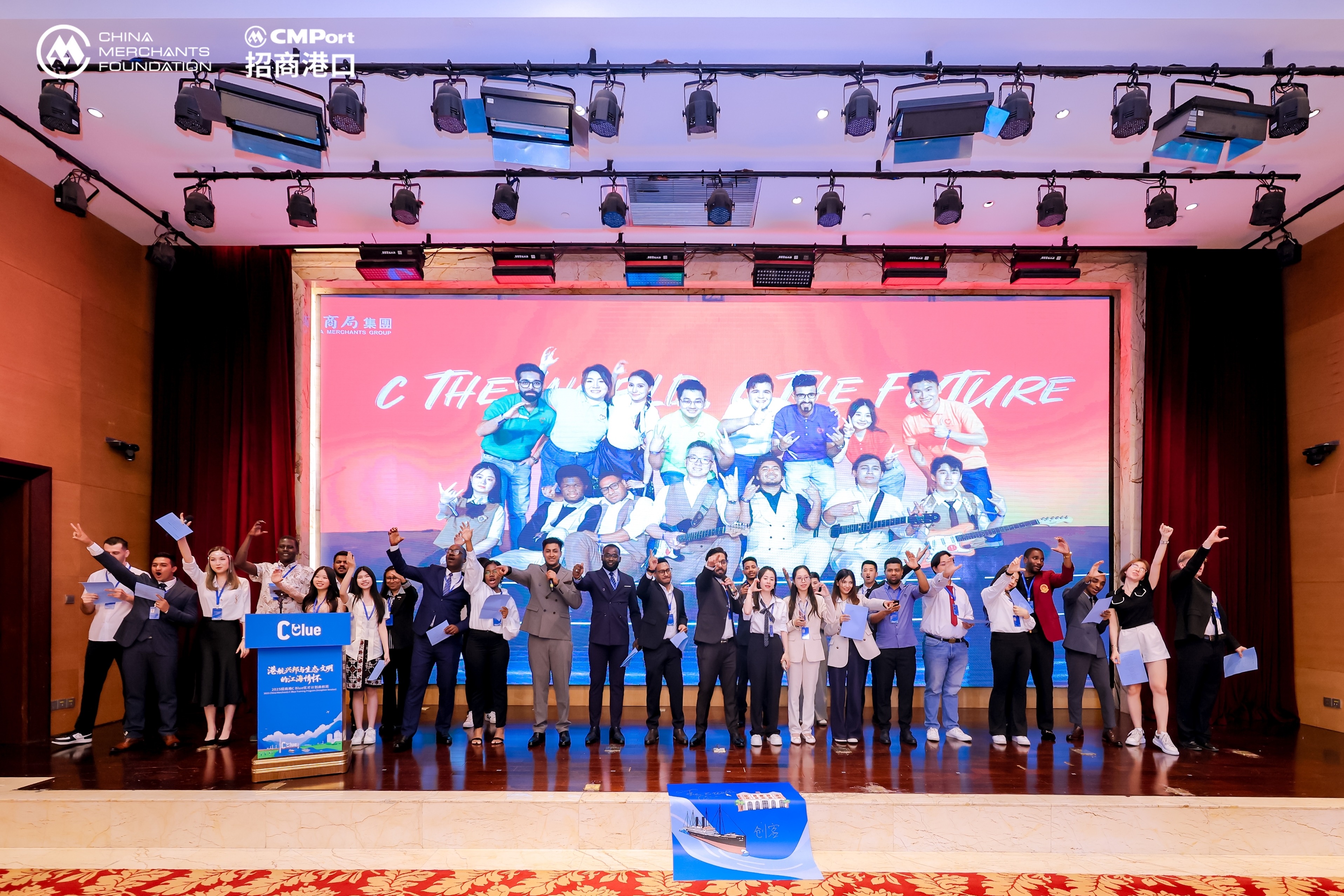 本届C Blue优才计划启航班由招商局慈善基金会资助,招商港口主办,招商交科、长航集团协办,香港新界青年联会承办,以“港航兴邦与生态文明的江海情怀”为主题,聚焦“科技与生态的双向融合”。C Blue优才计划于2016年启动,至今已成功举办了13届,培训了来自6大洲65个国家的400余名学员。学校作为首期C Blue优才计划的唯一协办单位,一直积极参与其中。未来,招商港⼝将继续以深化⽂明互鉴、促进合作共赢为基础,让学员以 C Blue 优才计划为⽂化交流起点,将科技创新、⽂化交流、绿⾊发展转化为“可传播、可互动、可共创”的⻘春故事。