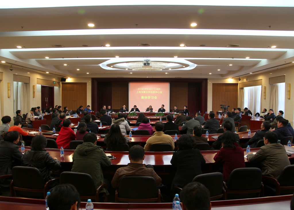 为深入学习宣传贯彻党的十八大精神,12月14日下午,上海海事大学党委中心组专门召开集体学习会,交流十八大精神学习体会。校党政领导於世成、黄有方、孔凡邨、金永兴、肖宝家、杨万枫、门妍萍、王海威分别结合工作实际,交流学习体会。党委中心组(扩大)全体成员参加学习。