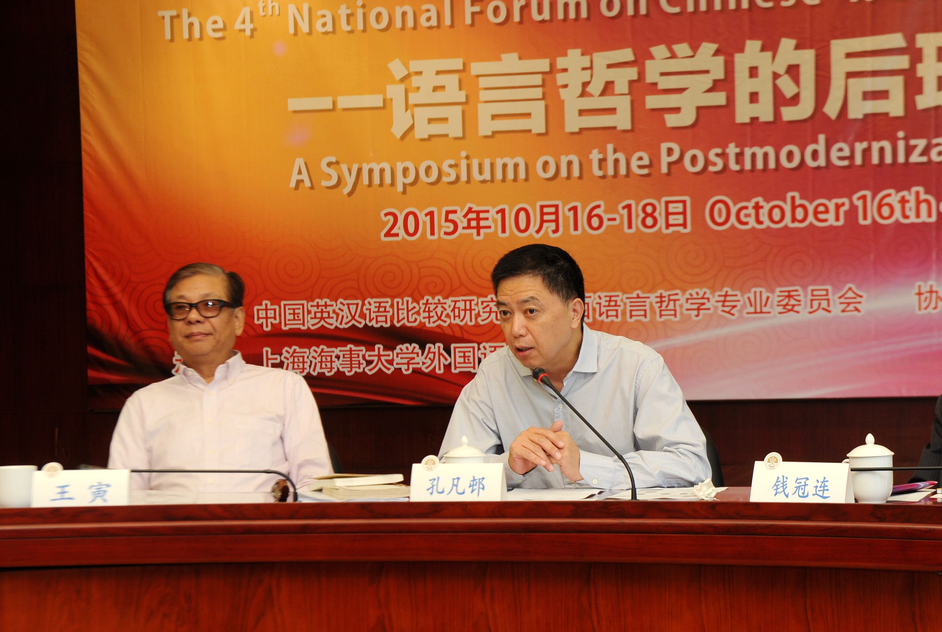 10月16日至18日,由中国英汉语比较研究会中西语言哲学专业委员会主办、上海海事大学外国语学院承办的“第四届中西语言哲学高层论坛——语言哲学的后现代化专题研究”在我校举行。校党委副书记、副校长孔凡邨教授,中西语言哲学研究会会长、四川外国语大学王寅教授,广东外语外贸大学钱冠连教授,华东师范大学潘文国教授等70余位专家、学者参加了此次论坛。