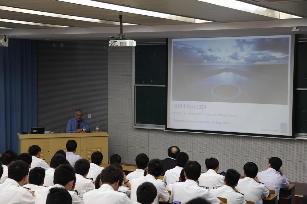 5月21日下午,DNV大中国地区总裁、DNV副总裁Beller先生来到上海海事大学商船学院,作了题为《Shipping 2020》的航运报告,金永兴副校长、相关部门及学院负责人、教师和学生代表等参加报告会。