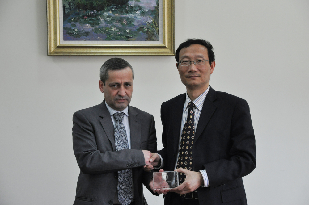 金永兴副校长向客人介绍了我校国际交流情况,并与来宾就可开展的合作领域进行了交流。