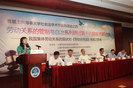 6月9日,首届上海海事大学社会法学术节开幕式及系列活动之四“劳动关系的管制与自治系列研讨第十六期学术研讨会”在我校举行。上海市法学会常务副会长林国平、上海海事大学校长黄有方,以及来自清华大学、吉林大学等单位的70多名专家学者和实务界人士出席了本次学术盛会。 2017-06-15, 星期四