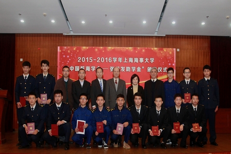 11月23日,2016年中国航海学会——张荣发助学金颁发仪式在我校举行。国际海事组织首任海事大使徐祖远,我校校长黄有方,党委副书记、副校长王海威,张荣发基金会执行长钟德美女士等出席了颁奖典礼。我校及上海职业技术学院共14名学生获得助学金资助。 2016-11-24, 星期四