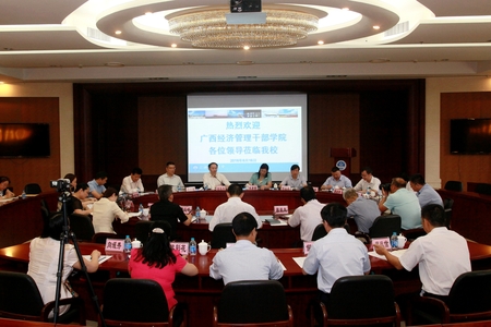6月16日,广西经济管理干部学院院长朱朝霞、副院长何品荣,以及各二级部门负责人等来上海海事大学访问、调研。我校党委书记金永兴、副校长杨万枫等与来宾进行了会谈。 2016-06-16, 星期四 -
