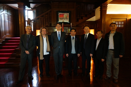 4月8日,法国政府授予上海海事大学物流学院汤天浩教授“法兰西共和国国家棕榈教育骑士勋章”授勋仪式在法国驻上海总领事馆隆重举行,校党委书记金永兴、国际交流处、物流学院相关负责人及我校教师代表应邀出席,受聘于我校的海外名师、外专千人特聘教授等外籍专家专程参加授勋仪式。 2016-04-12, 星期二