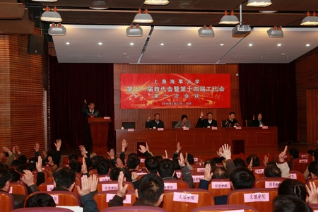3月30日下午,上海海事大学第十一届教代会暨第十四届工代会第一次会议圆满闭幕。上海市教卫工作党委副巡视员、市教育工会常务副主席王向群,以及我校“双代会”正式代表、列席代表出席闭幕式。 2016-03-31, 星期四 -