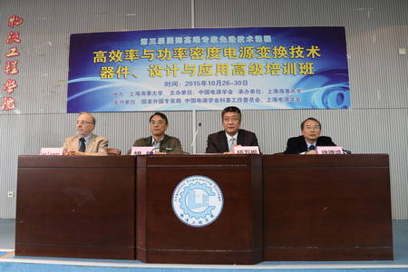 10月26日至30日,第三届国际高端专家先进技术课程高级研修班在物流工程学院举办。中国电源学会理事长、浙江大学徐德鸿教授,我校副校长杨万枫以及相关学院、部门负责人出席开幕式。来自全国各地电源企业、高校、研究所的学者及我校电气专业的博士、硕士研究生等100余人参加培训。 2015-11-03, 星期二 -