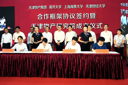 6月30日下午,天津物产集团、上海海事大学、南开大学、天津财经大学四家单位签订校企合作框架协议,共同组建天津物产研究院。 2015-07-03, 星期五 -