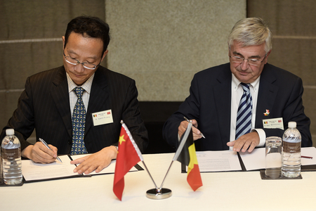 6月25日,在比利时国王菲利普的见证下,上海海事大学与安特卫普港务局合作协议签署仪式在外滩茂悦酒店举行。黄有方校长、安特卫普港务局CEO Eddy Bruyninckk代表双方在协议上签字。 2015-06-29, 星期一 -