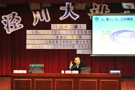 -   2月10日,黄有方校长应邀赴安徽泾县考察,并为泾县县委理论学习中心组成员、全县副科级以上干部等约300余人作了题为“上海自贸区与现代物流发展的若干启示”的学术报告。 2015-02-12, 星期四 2月10日,黄有方校长应邀赴安徽泾县考察,并为泾县县委理论学习中心组成员、全县副科级以上干部等约300余人作了题为“上海自贸区与现代物流发展的若干启示”的学术报告。 2015-02-12, 星期四