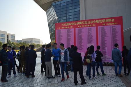11月11日,上海海事大学2015届毕业生供需见面洽谈会在临港校区体育馆举行。来自全国各地的503家用人单位与学生面谈,现场为学生提供就业岗位7000余个,用人单位累计面试16000多人次,近500名学生当场签订就业协议书。 2014-11-14, 星期五 -