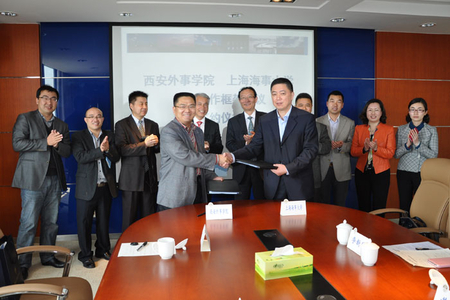 4月9日上午,我校与西安外事学院举行校际合作框架协议签订仪式。西安外事学院董事长黄藤、副院长李海峰等一行4人,我校校长黄有方,党委副书记、副校长孔凡邨及相关职能部门负责人参加签约仪式。 2014-04-09, 星期三 -
