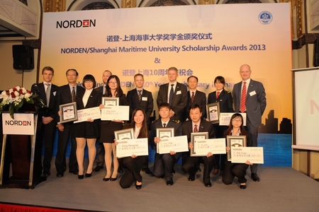 11月29日,第九届上海海事大学—诺登奖学金、奖教金颁奖礼举行。丹麦诺登轮船公司总裁兼首席执行官Carsten Mortensen先生、执行副总裁Ejner Bonderup先生、副总裁Jakob Bergholdt先生,我校黄有方校长、金永兴副校长及师生代表等共六十余人出席颁奖礼。 2013-12-03, 星期二 -