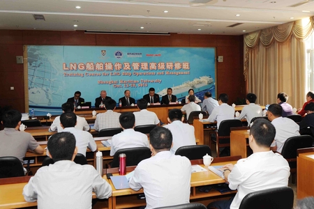10月14日上午,LNG船舶操作和管理高级培训班在我校举行开班仪式。杨万枫副校长、英国剑桥运输学院亚洲区代表Morgan 先生和英国百力马公司、霍尼韦尔公司的专家出席。 2013-10-14, 星期一 -