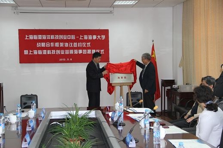 5月8日上午,上海市科技创业中心副主任严雄,上海临港海洋科技创业中心董事长王荣一行9人莅临我校,参加上海临港海洋科技创业中心与上海海事大学战略合作框架协议签约仪式,并现场揭牌上海临港科技创业苗圃海事园。 2013-05-09, 星期四 -