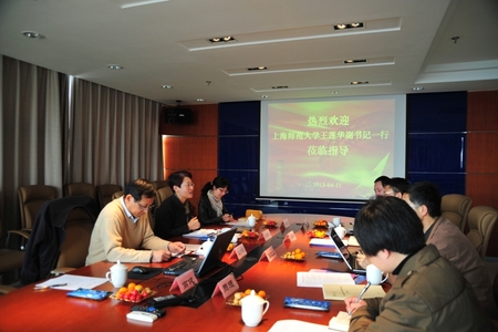 4月11日,上海师范大学一行4人在党委副书记、副校长、工会主席王莲华带领下,来到上海海事大学,交流民主评议领导干部工作。我校党委副书记、纪委书记、工会主席门妍萍及相关部门负责人等热情接待了来宾。 2013-04-15, 星期一