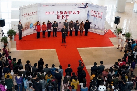 3月27日下午,“海大人文”节庆系列之2013上海海事大学读书节开幕式在图书馆大厅隆重举行。校党委书记於世成,宣传部、学生处、图书馆、团委等部门负责人及相关学院负责人出席开幕式。 2013-03-30, 星期六 -