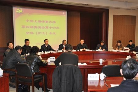 1月22日上午,中共上海海事大学第四届委员会第十六次全体(扩大)会议在新校行政楼128室举行。会议由党委书记於世成主持。会议审议了2012年党委工作报告,审议通过了《中共上海海事大学委员会2013年工作要点(草案)》。 2013-01-22, 星期二