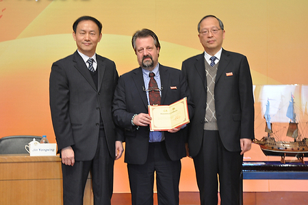 近日,上海海事大学客座教授、安特卫普港务局中国总代表朱伯彦先生(Jan van der Borght)向我校赠送了一艘制作于1895年的古船模。校党委书记於世成、副校长金永兴出席捐赠仪式。 2012-12-21, 星期五