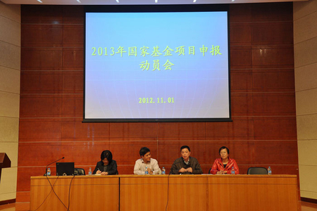 11月1日,上海海事大学在临港校区图书馆报告厅举办2013年国家基金项目申报动员。各学院院长、科研副院长、科研秘书及国家基金项目申报人员和科技处全体成员等170余人参加会议,会议由党委副书记、副校长孔凡邨教授主持。 2012-12-07, 星期五 -