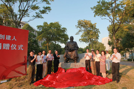 2012年10月3日,由航海专业78级校友向母校捐赠的中国高等航海教育创始人唐文治先生铜像揭幕仪式在上海海事大学临港校区隆重举行,上海海事大学校长黄有方、航海专业78级各班代表等共同为唐文治先生铜像揭幕。 2012-10-04, 星期四