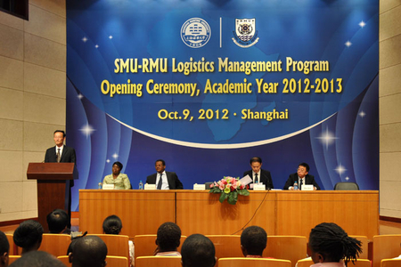 10月9日,上海海事大学-中西非地区海事大学物流管理本科项目2012-2013学年开学仪式在我校临港校区举行。来自加纳、喀麦隆等6个国家的36名中西非地区海事大学留学生,正式开始了在我校为期一年的学习生活。中西非地区海事大学校长Aaron Obeng TURKSON,上海海事大学校长黄有方及交通运输学院、国际交流处、国际教育学院等部门、学院负责人,全体留学生参加开学仪式。金永兴副校长主持大会。 2012-10-10, 星期三