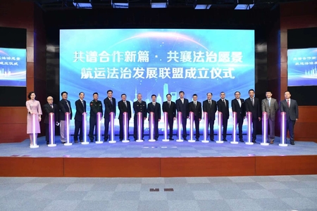 11月10日上午,由上海海事法院倡议组建的“航运法治发展联盟”正式成立。上海市交通委员会党组成员、副主任叶兴,上海市高级人民法院党组成员、副院长吴金水,上海海事法院党组书记、院长汪彤,学校党委副书记、纪委书记严大龙出席成立仪式。 2022-11-12, 星期六 -