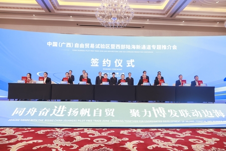 11月5日,在第五届中国国际进口博览会上,借助中国(广西)自由贸易试验区暨西部陆海新通道专题推介会之机,上海海事大学与北部湾港集团签署战略合作框架协议,双方将在人才培养、科学研究、学术交流、文化公益等方面深化合作。 2022-11-06, 星期日 -