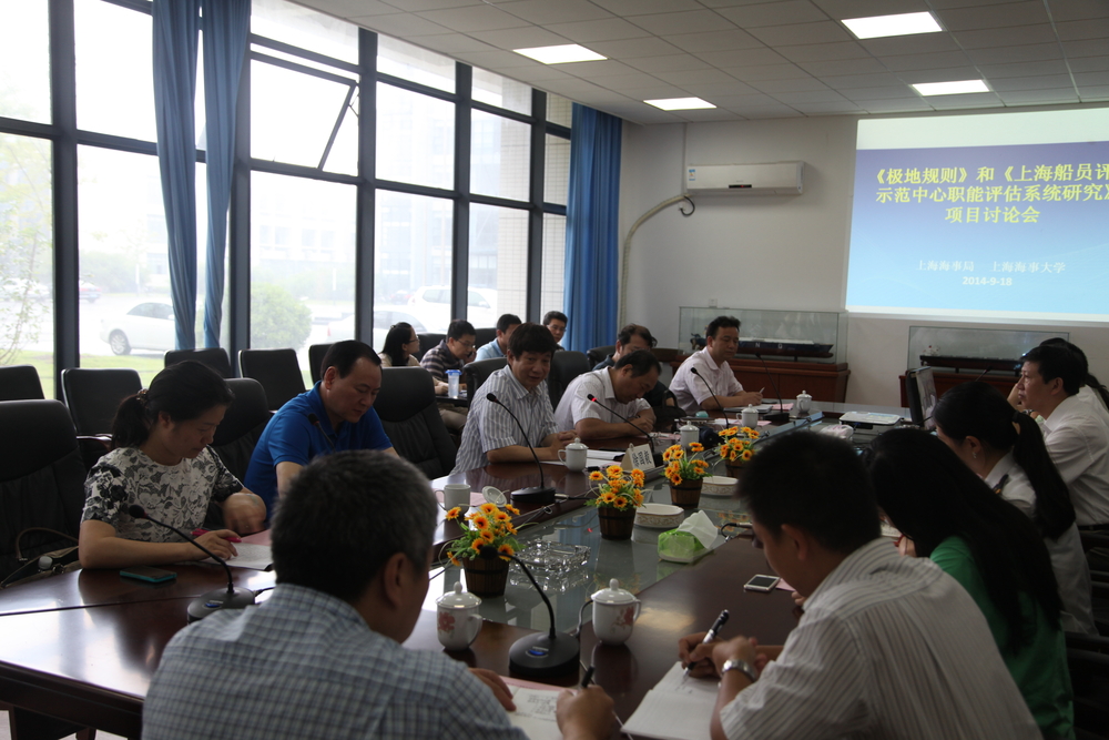 9月18日上午,极地规则(草案)的审定工作会议在上海海事大学商船学院举行。上海海事局局长徐国毅及船舶检验管理处、船员管理处、船舶监督处、局办公室负责人,我校校长黄有方,商船学院、继续教育学院负责人及相关专业教师代表等参加会议。