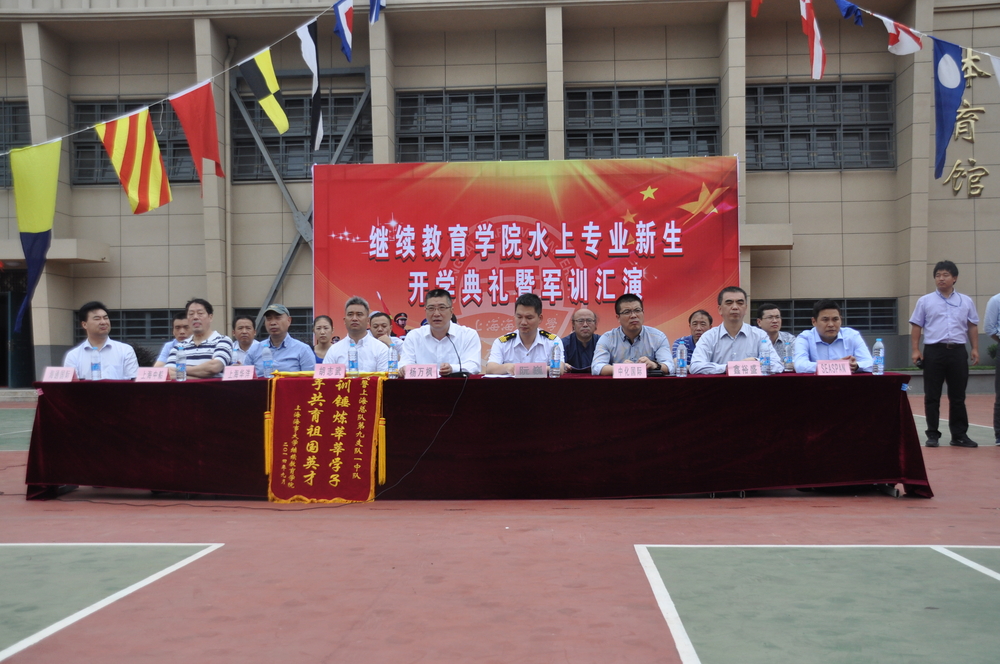 9月16日上午,上海海事大学继续教育学院2014级航海类成人高职学生开学典礼暨军训阅兵仪式在港湾校区举行。上海华洋、上海化兴、加拿大SEASPAN、北京鑫裕盛、上海中船、海通国际、天津中洋、上海十聚等8家定向委培合作航运企业的代表,我校杨万枫副校长及继续教育学院负责人等出席。