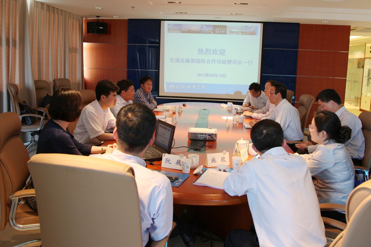 5月14日下午,交通运输部国际合作司司长杨赞、亚太域合作处处长张晓杰、调研员边向国等一行三人到上海海事大学临港校区调研。校党委书记於世成,校长黄有方,党委副书记、副校长孔凡邨,副校长金永兴、肖宝家及国际交流处、国际教育学院、交通运输学院、继续教育学院、校长办公室等部门负责人热情接待了来宾。