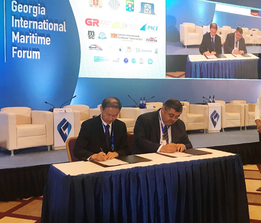 作为此次国际论坛重要成果之一,金永兴书记代表上海海事大学与格鲁吉亚巴统国立海事大学(Batumi State Maritime Academy)签订了两校合作备忘录。在与巴统国立海事大学校长伊拉克里·沙拉比泽(Irakli Sharabidze)教授的会谈中,金永兴书记表示,格鲁吉亚是共建“一带一路”的友好合作伙伴,巴统是东欧地区历史悠久的重要港口城市,期待今后两校在学生互换、教师交流、船员培训等方面开展实质性的合作。