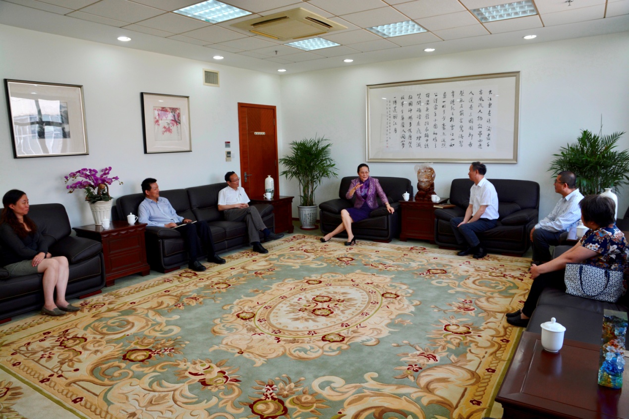 校党委书记金永兴、校长黄有方代表学校对赵雯一行的来访表示欢迎,并就学校发展等作了汇报交流。