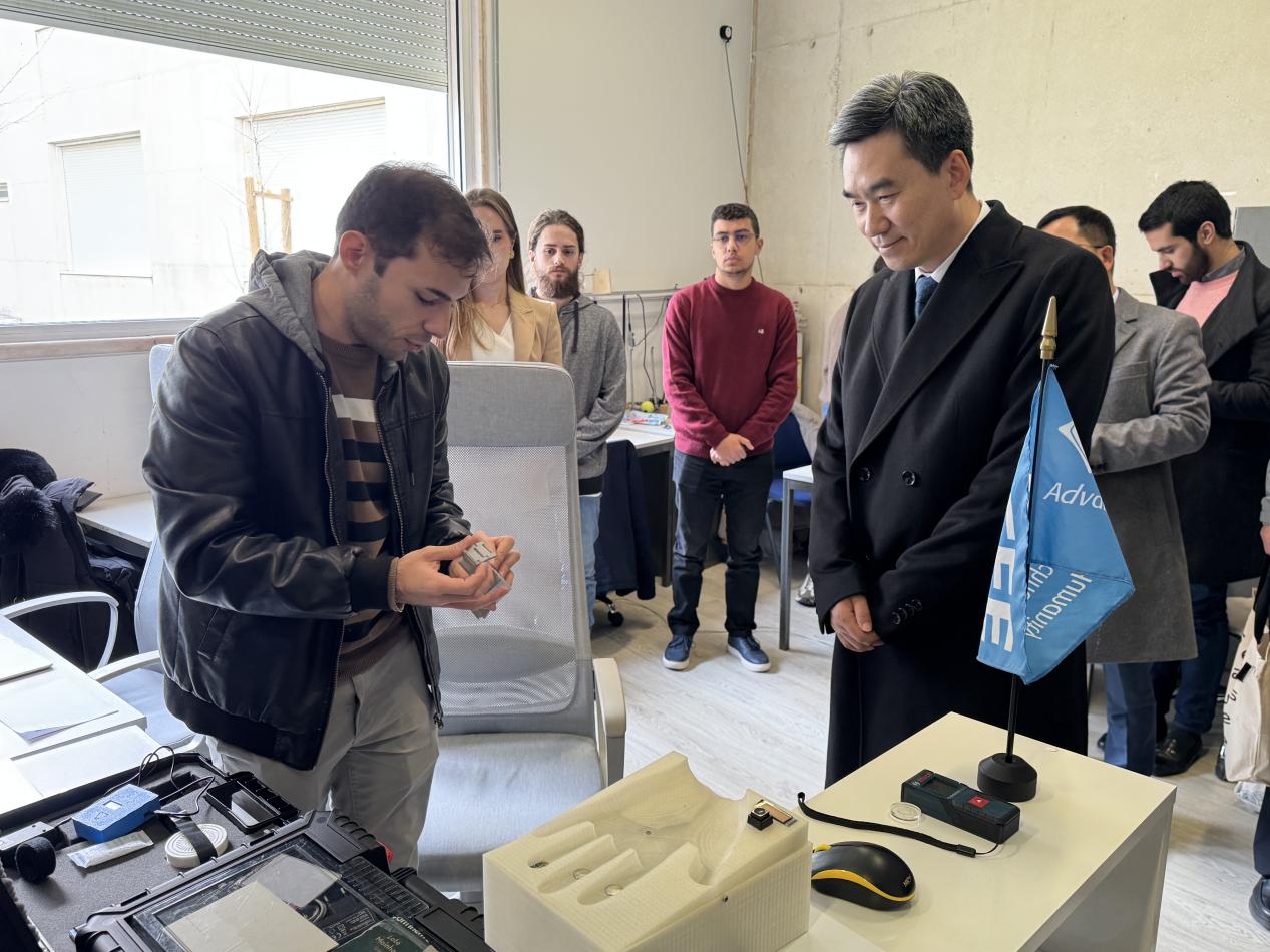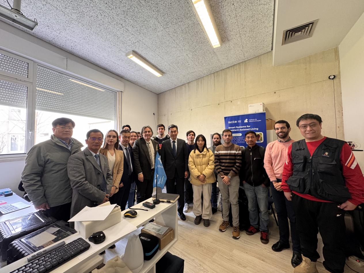 在里斯本大学学院访问过程中,初北平校长一行与分管科研副校长豪尔赫·科斯塔(Jorge Costa)教授和分管国际交流副校长玛丽亚•达斯•多雷斯•格雷罗(Maria das Dores Guerreiro)女士等代表进行了深入会谈,共同回顾了2018年以来两校在访问生项目、合办学术会议、教师互访等方面的合作成果,并达成一致,在原有物联网信息技术领域合作基础上,进一步拓展合作至法学、经济学、社会科学等领域。随后,访问团参观了奥克塔维安·阿德里安·波斯特拉切(Otavian Adrian Postolache)教授数字技术和自动化实验室,初北平与奥克塔维安教授团队的学生进行了亲切交流,慰问了在该校就读博士研究生的张钰洁同学(上海海事大学物流工程学院本科、硕士毕业生)。最后,初北平校长逐一听取了奥克塔维安教授团队学生的学习、科研进展汇报,对他们认真的治学态度、刻苦学习的精神表示赞赏。