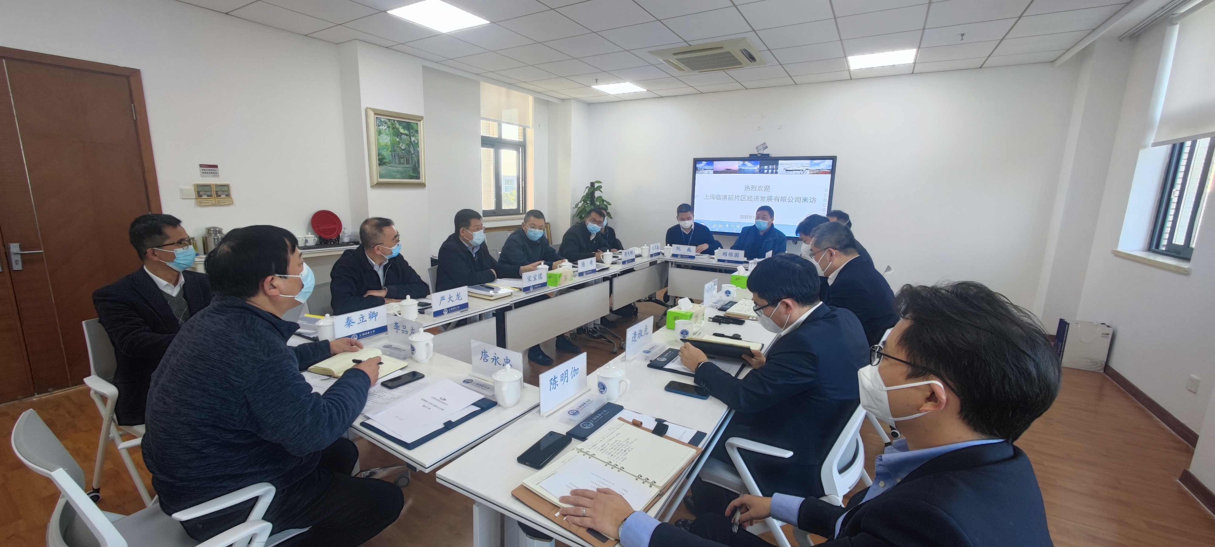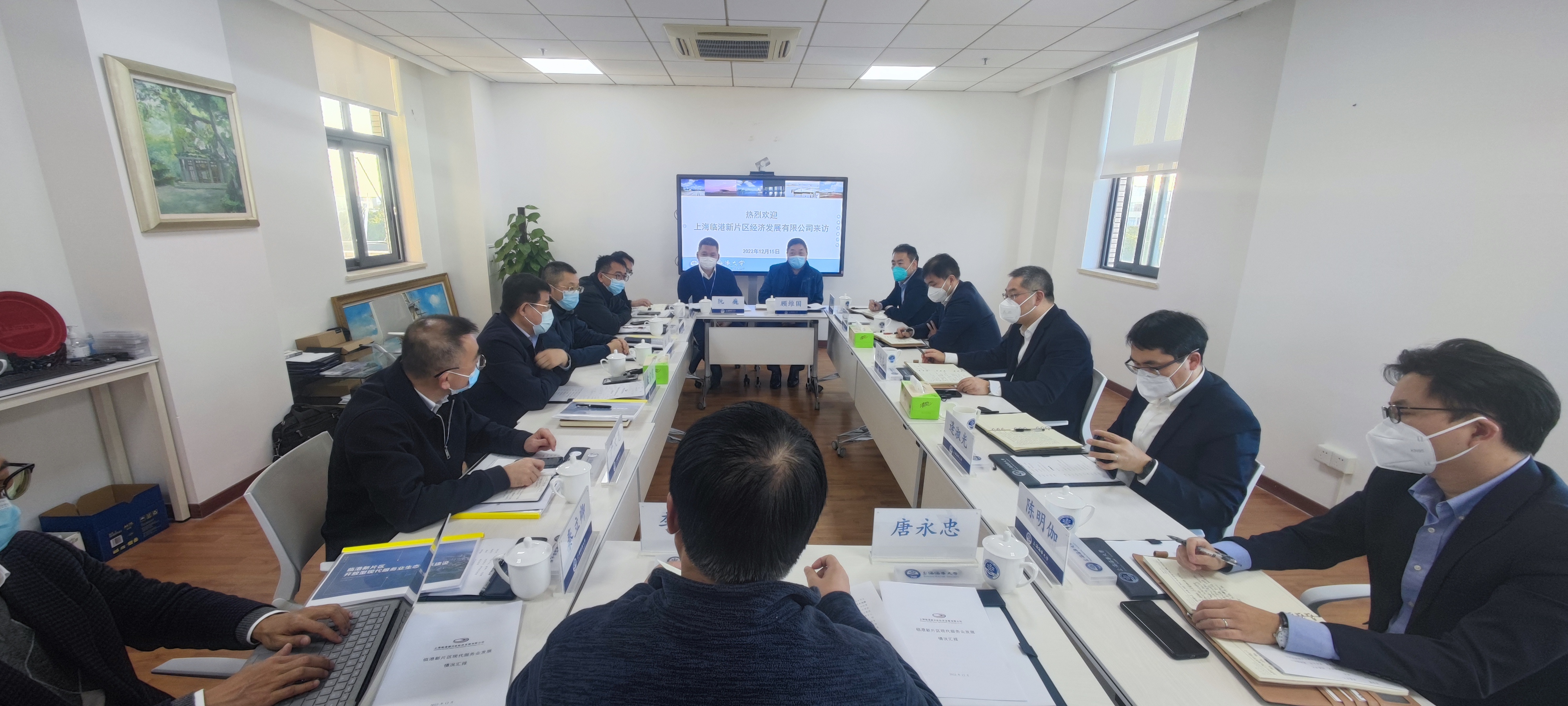 12月15日下午,上海临港新片区经济发展有限公司党委书记、董事长、总经理孙仓龙,常务副总经理逄淑光,副总经理张俊一行来访,校党委书记宋宝儒,校长陆靖,校党委副书记、纪委书记严大龙接待来宾,党委办公室、校长办公室、科技处、国际交流处(国际教育学院)、外国语学院、资产经营有限公司等部门负责人参加座谈交流。