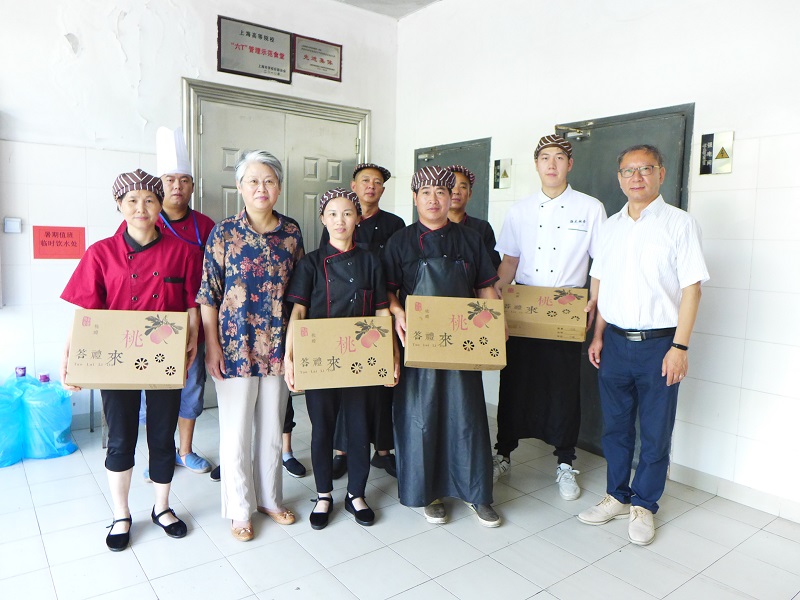 门妍萍副书记一行首先来到食堂后厨和配菜间,代表校工会对后勤一线职工甘于奉献、爱岗敬业的精神表示赞赏,并把解暑礼物送到每个人手中,感谢他们为学校付出的辛勤劳动。
