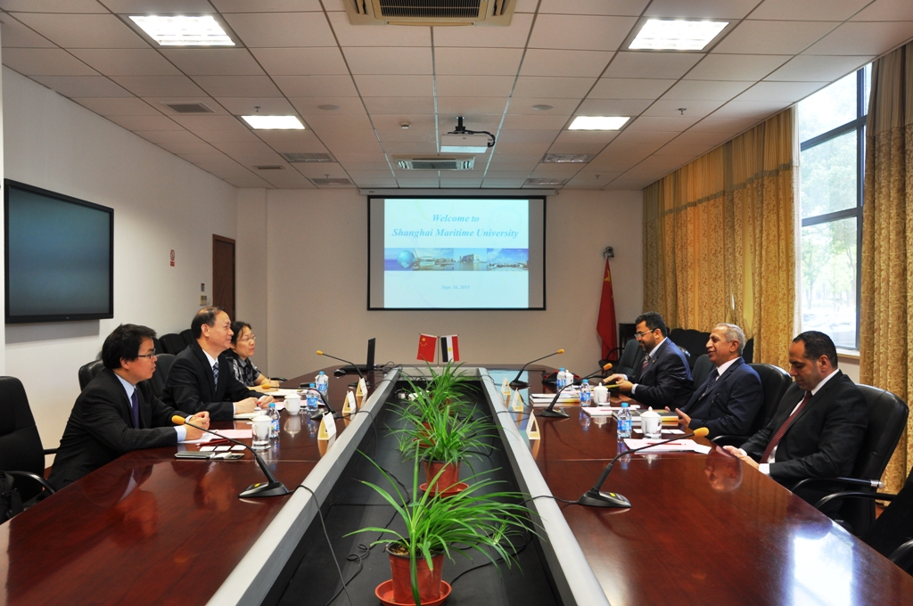 9月16日,阿盟科技与海运学院校长伊斯梅尔·法拉格 (Ismail Abdel Ghafar Ismail Farag)一行来上海海事大学访问,校党委书记金永兴及国际交流处、交通运输学院负责人等会见来宾。