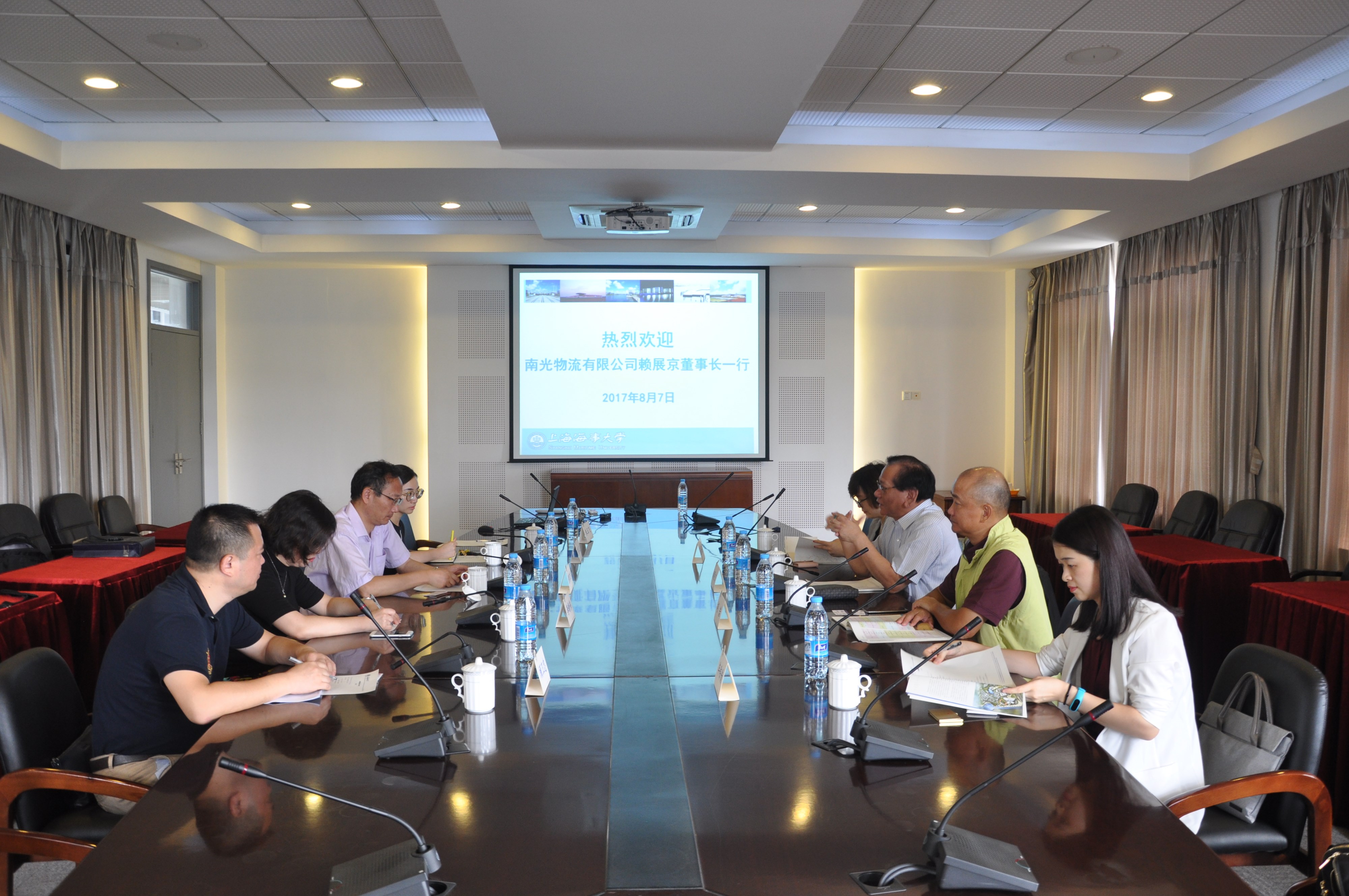 黄有方校长对赖董事长一行表示欢迎,对学校的发展概况和近几年政产学研合作情况进行了介绍,并表示,学校愿意为南光物流及南光集团的发展提供人才和智力支持。
