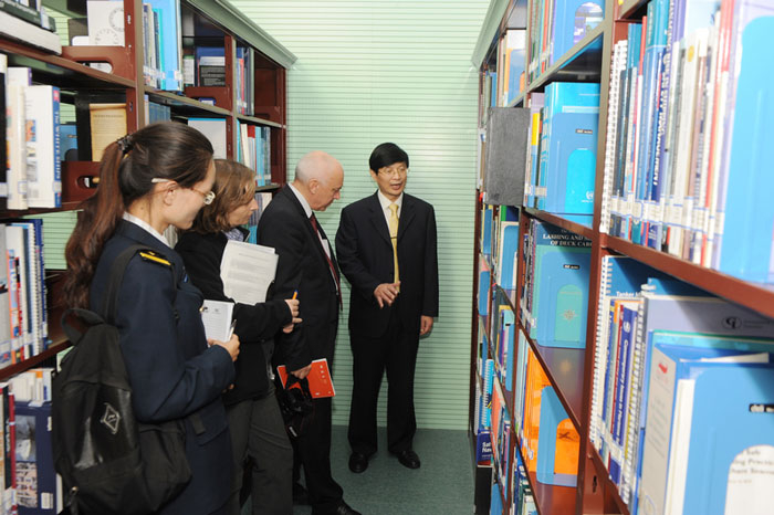 评估专家一行对我校在教育和培训方面的政府认证、检测等国家规定执行情况,航海教育师资,培训设施和设备,课程设计、审查和批准,培训检测和监督,学员能力评估和检查,招生、文凭和证书等各方面的情况进行了仔细检查。同时,评估专家一行对我校学生航海技能训练、消防演习,以及航海模拟器、轮机模拟器、水上训练中心、工程训练中心、船舶机舱综合实验室、图书馆等进行了现场考察。