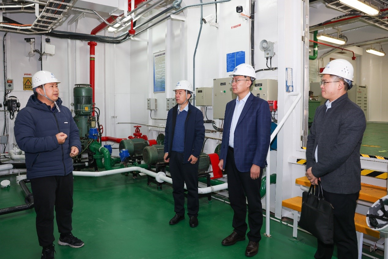 座谈会前,徐立清一行参观了学校组合式特种液货船“吴淞”轮、自动化机舱。