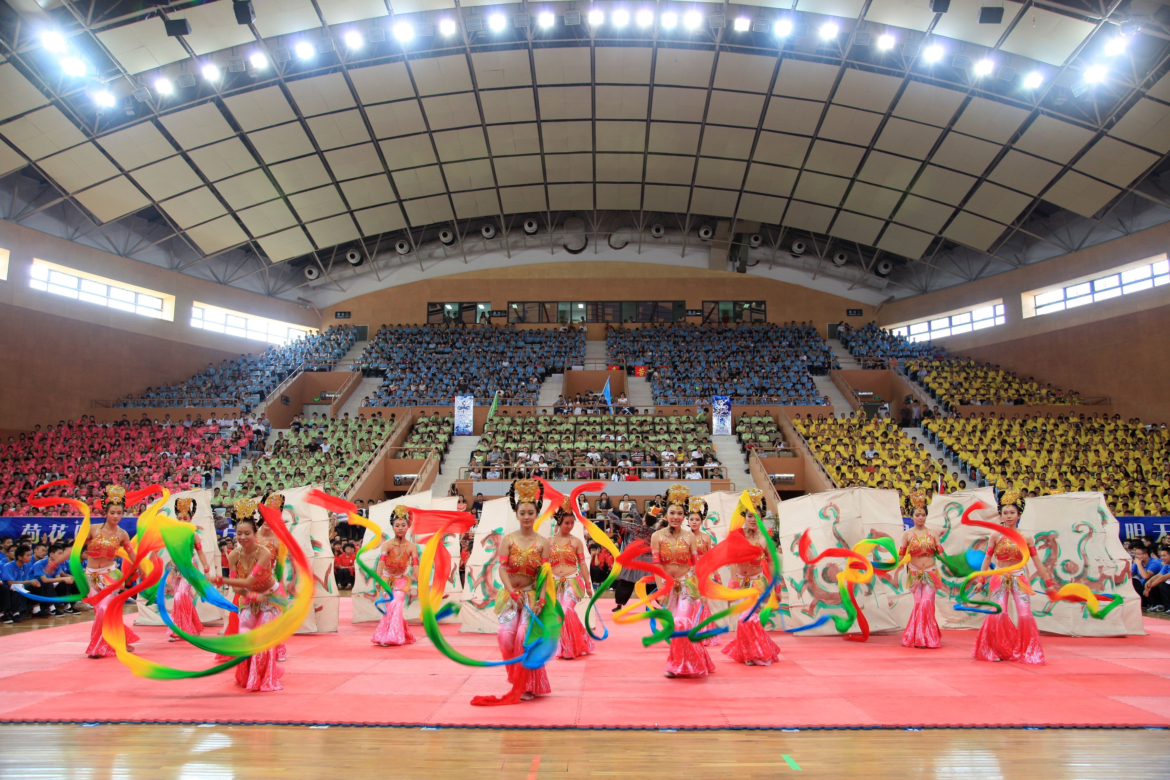 校交响乐团、合唱团、舞蹈团、健美操队、旗语队、武术队以及学生社团的同学们为大家献上了精彩的演出,赢得了全场观众的阵阵掌声。