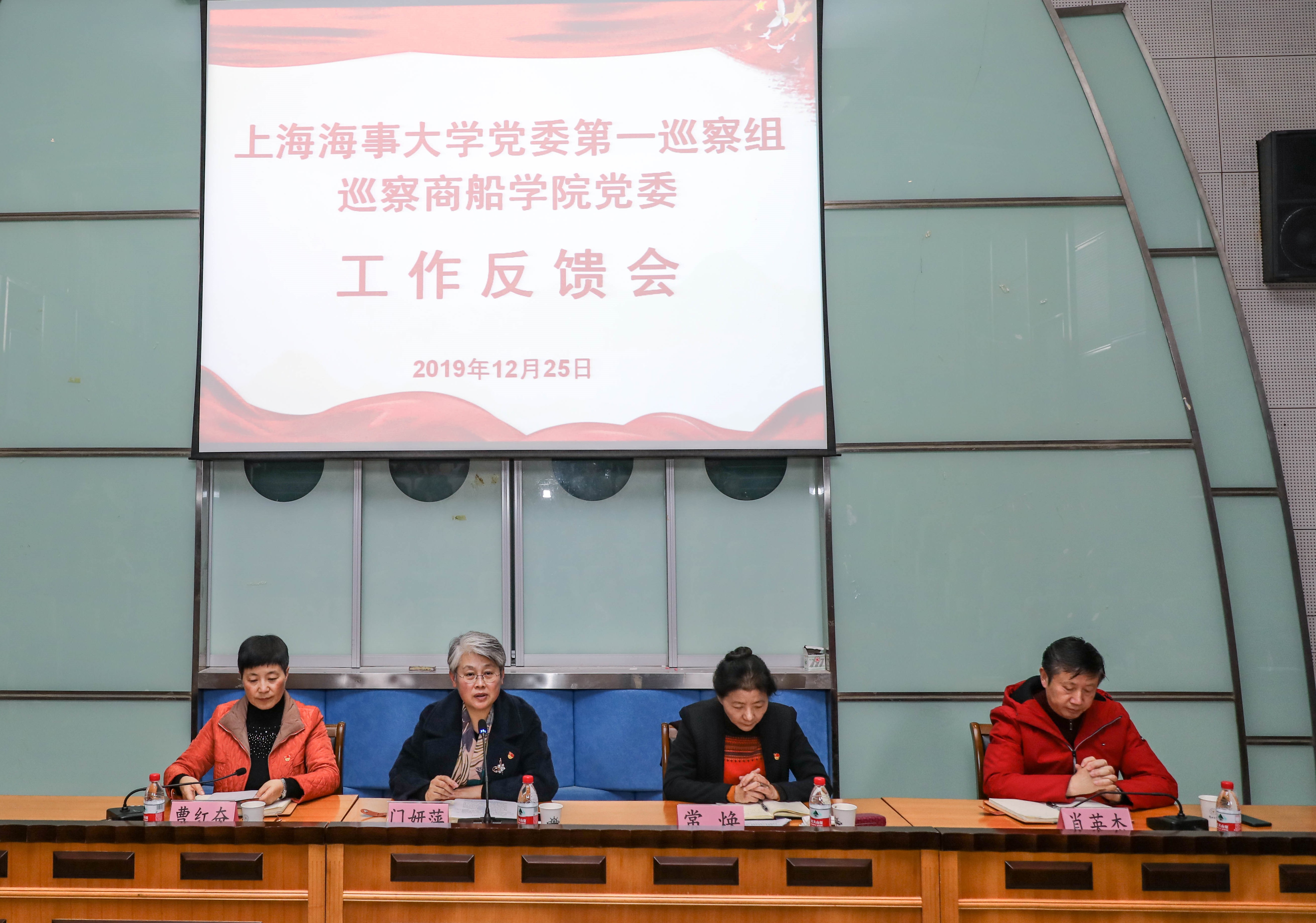 12月25日下午,上海海事大学召开党委第一巡察组巡察商船学院党委工作反馈会。校党委副书记、纪委书记、巡察办主任门妍萍,党委第一巡察组组长常焕,以及第一巡察组全体成员出席会议。商船学院领导班子、在职教职工、离退休教师代表、学生代表等参加了会议。