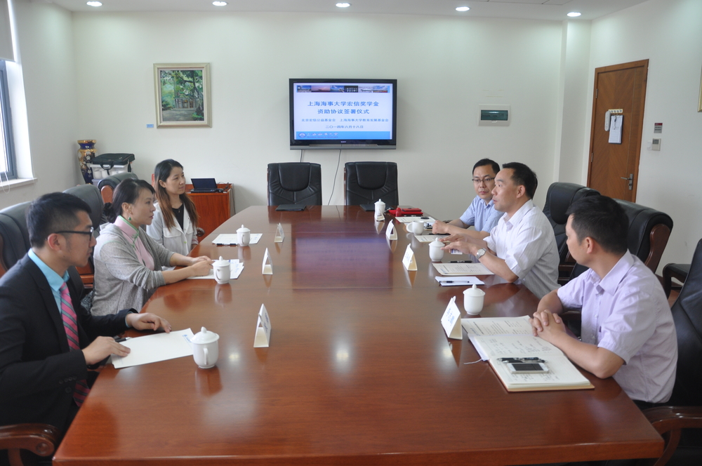 6月18日下午,上海海事大学宏信奖学金资助协议签署仪式在行政楼417室举行,北京宏信公益基金会副理事长倪迎佳,我校副校长王海威及相关部门负责人等参加仪式。
