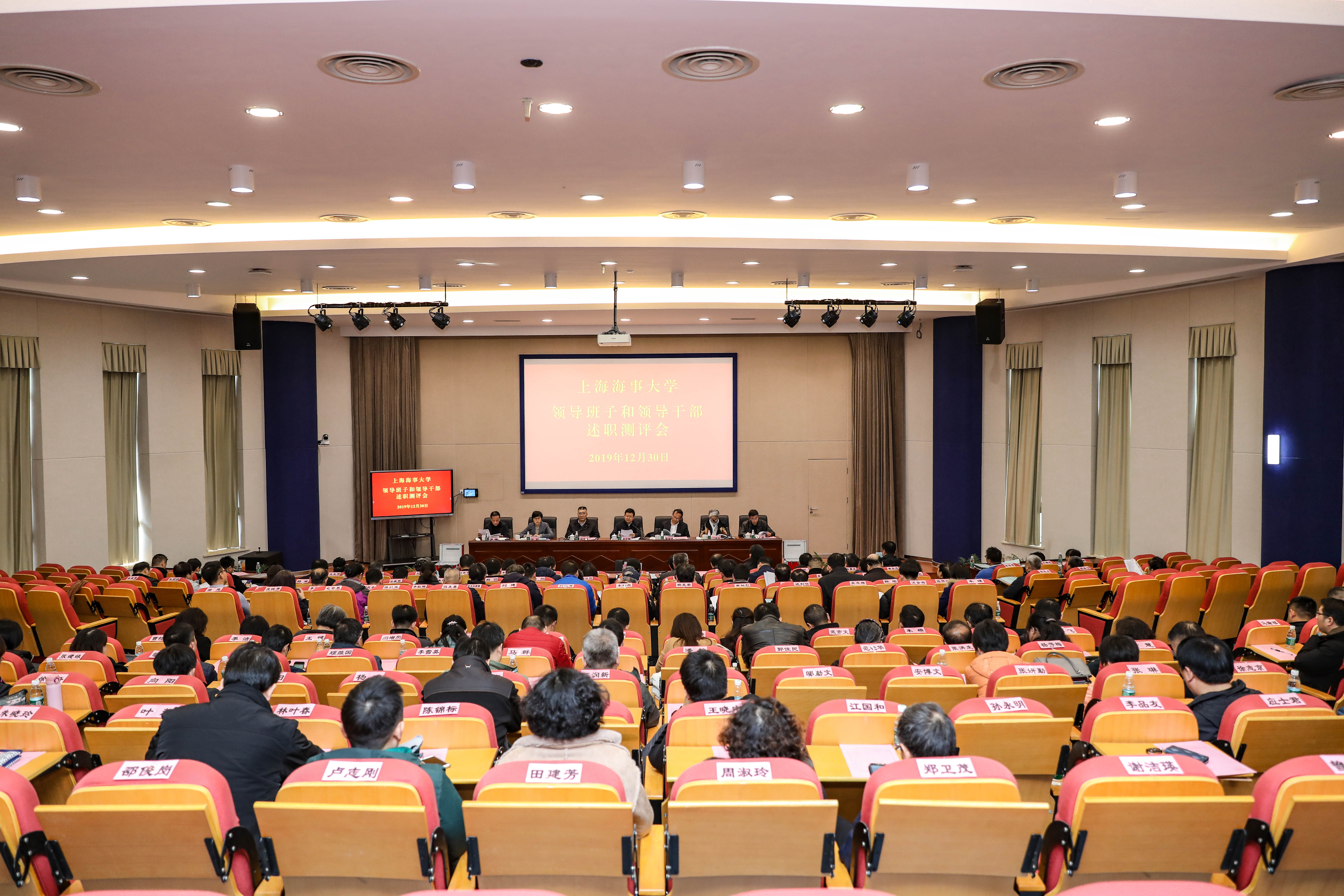 根据上海市教卫工作党委《关于做好2019年度市属高校党政领导班子分类绩效考核和领导干部考核工作的通知》要求,12月30日下午,上海海事大学举行了2019年度领导班子和领导干部述职测评会。全体校领导、两委委员、中层干部正职,以及工青妇代表、民主党派代表、离退休老同志代表、学校第十一届教代表等参加会议。校党委书记宋宝儒主持测评会。