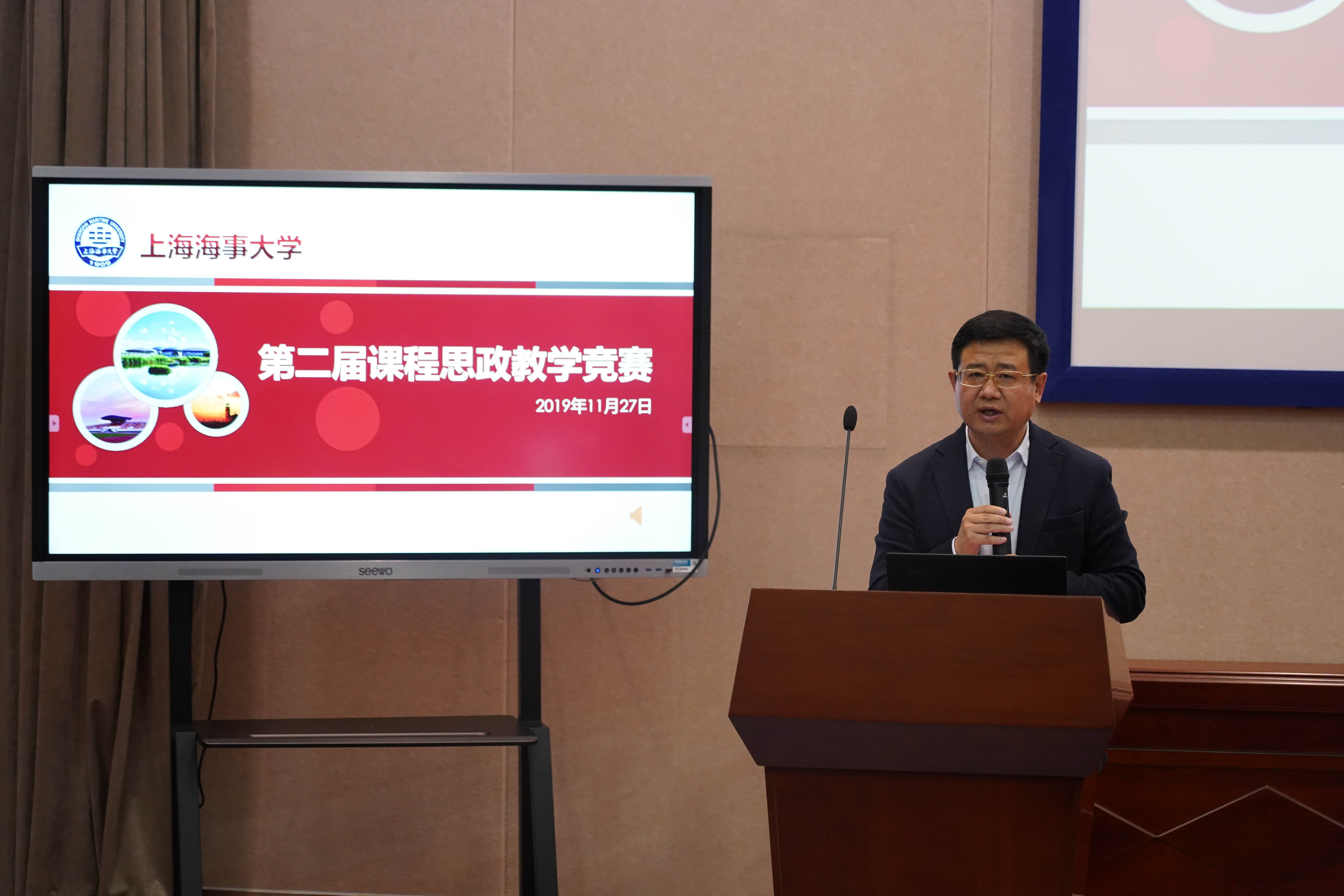 为深入落实立德树人根本任务,强化课程育人导向,深入挖掘各类课程的“德育元素”,不断积累课程思政改革的经验和成果,11月27日下午,上海海事大学举行第二届课程思政教学竞赛决赛,比赛邀请校内外5位专家担任评委,校党委书记宋宝儒,党委副书记、工会主席贺莉,副校长施欣等出席,各学院党政领导及教师代表观摩了本次比赛。