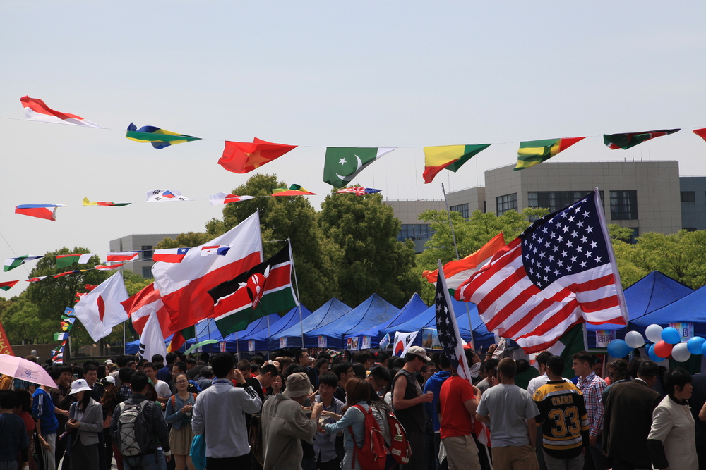 5月7日,我校临港校区图书馆南广场成了多国汇聚的“迷你世界博览会”,来自近40个国家的200多名留学生以及我校众多师生欢聚于此,共度第六届国际文化交流节。