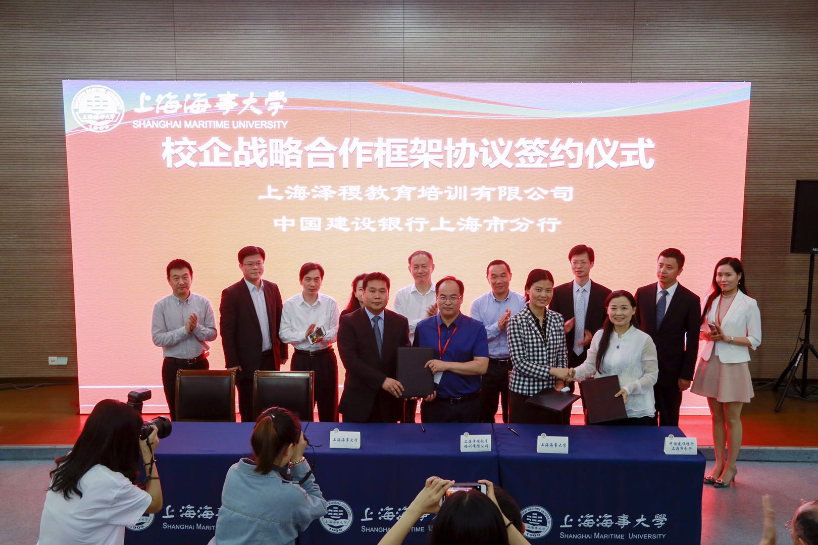 在与会嘉宾的见证下,我校与中国建设银行上海市分行等10家企业签订了校企战略合作框架协议。各合作企业将用长期提供师生实习岗位、提供奖学金、定点培养等方式来支持学校的教育事业。