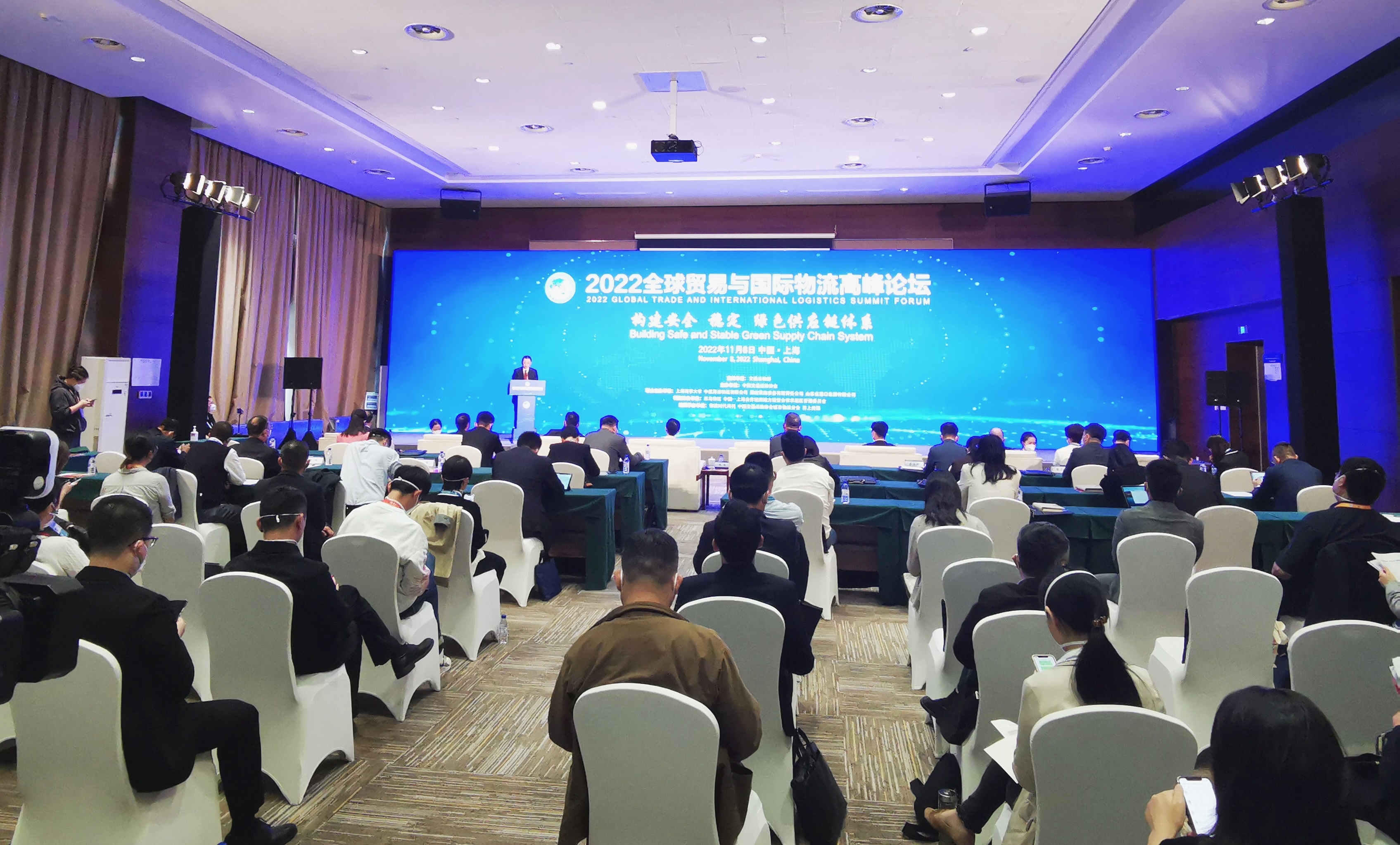 11月8日,第五届中国国际进口博览会物流业重要配套论坛——2022全球贸易与国际物流高峰论坛在上海国家会展中心举行。本次论坛由交通运输部支持,中国交通运输协会主办,上海海事大学、中远海运物流有限公司、国能铁路装备有限责任公司、山东省港口集团有限公司联合主办。上海海事大学校长陆靖出席论坛并致辞。